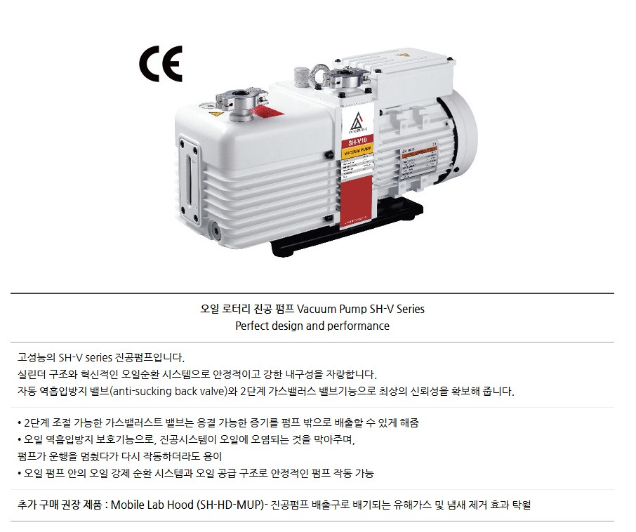 고성능 오일로타리 진공펌프 SH-V Series는 실험실, 건식오븐, 튜브퍼니스 등 다양한 진공 시스템에서 안정적이고 강력한 성능을 발휘합니다.
