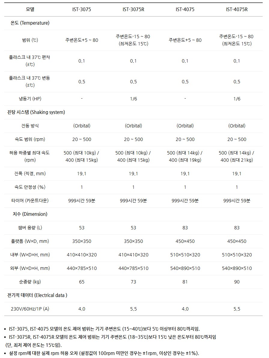 품명 실험실용 진탕 배양기 IST 시리즈, 최대 500rpm 고속 진탕 및 정밀 온도 제어, 스마트 자가진단 기능 탑재.