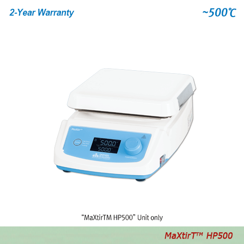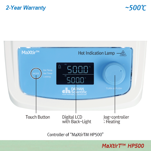 DAIHAN® 500℃ High-Temp Premium Hotplate “MaXtir TM HP500” , Solid Ceramic Glass Plate, 200×200mmWith Large LCD, Optimum Insulation Layer, Accurate Temp Control, Touch-button Controller, Hot-Top Indicator, Max. 500℃, Accu. ±0.3℃고온용 디지털 가열판, PID 온도 제어, 최적의 방열구조, 내열성 / 내화학성 / 내산성 솔리드 세라믹 글라스 플레이트