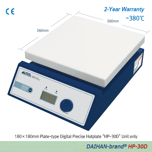 DAIHAN® 380℃ Standard Analog & Digital Hotplate “HP-A” & “HP-D” , Ceramic-Coated PlateWith High Temp Uniformity, 180×180- or 260×260-mm Plate, CE Certified, with Certi. & Traceability아날로그 & 디지털 정밀 가열판, 우수한 온도균일성 & 경제성, 세라믹 코팅 플레이트