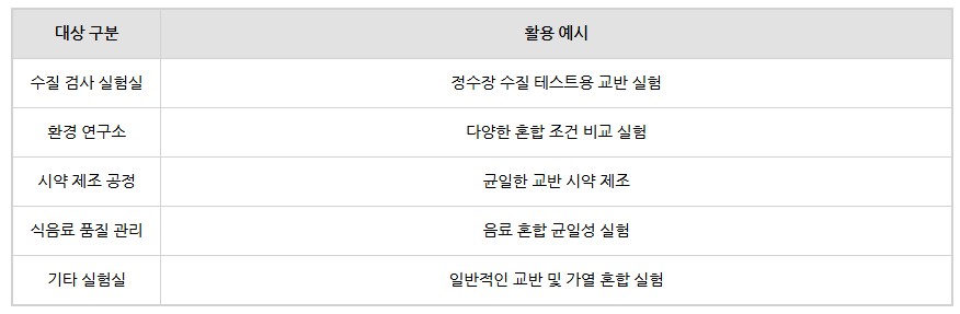 수질 실험 뿐 아니라 정밀 혼합 실험, 시료 준비, 다양한 실험 분야에서도 활용이 가능한 실험용 교반기입니다.