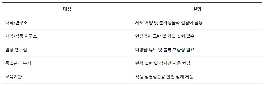 블록 타입 교체가 가능하여 여러 시료 형태에 맞게 사용할 수 있으며,