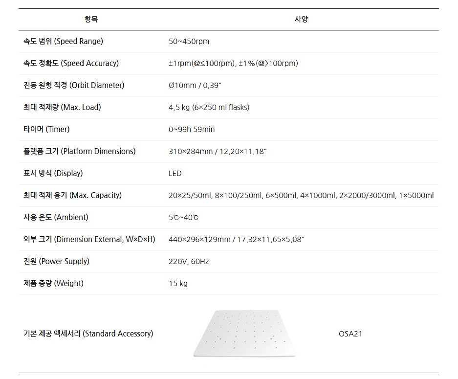 품명 OS-06U 다목적 진탕기는 50~450rpm 속도 조절, 4.5kg 적재, 디지털 타이머 기능을 갖춘 실험실용 쉐이커로 균일한 혼합과 안정적 진탕 실험에 적합합니다.