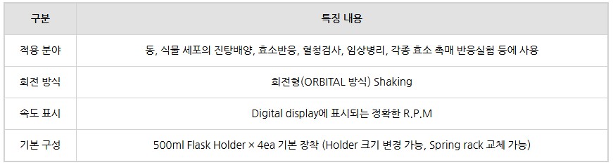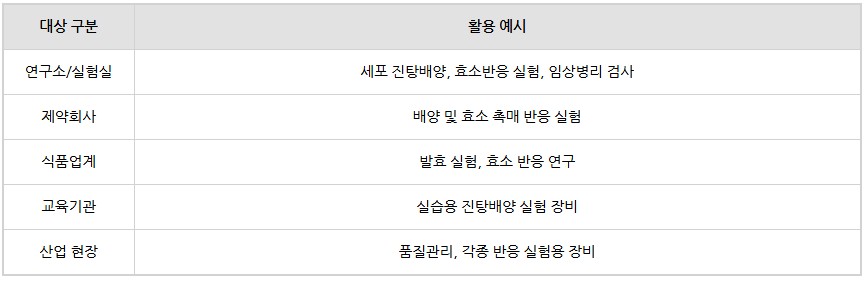 세포의 진탕배양, 효소반응, 혈청검사, 임상병리 실험 등에서 높은 활용도를 자랑하며,
