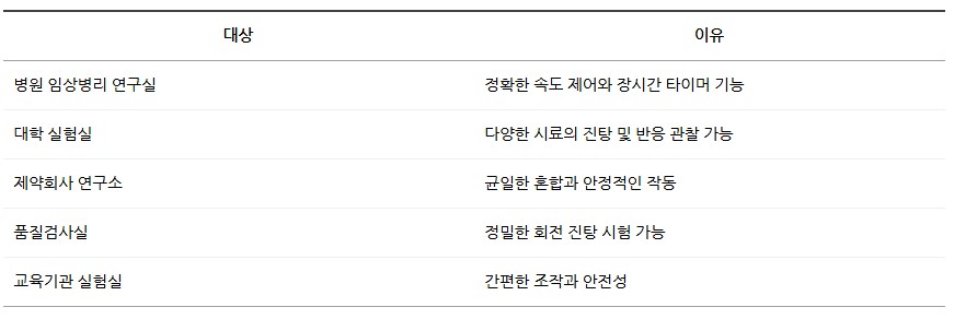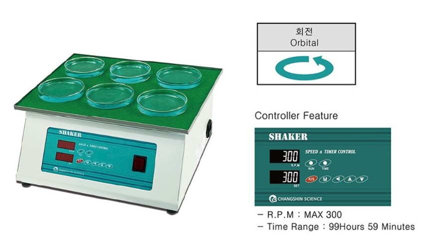 최대 300RPM과 최대 99시간 59분까지 설정 가능한 타이머로 장시간 실험에도 적합하며,