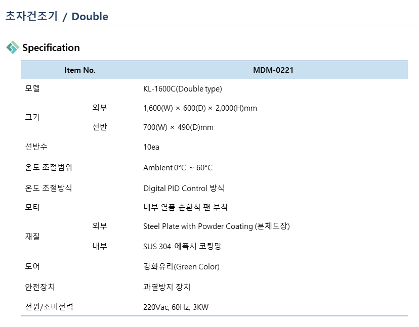 - 도어는 투시창이 설치되어 건조상태 확인 가능