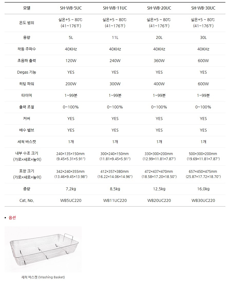 초음파 세척기 SUS304 가스제거 온도조절 기능 탑재 SH-WB-UC 시리즈