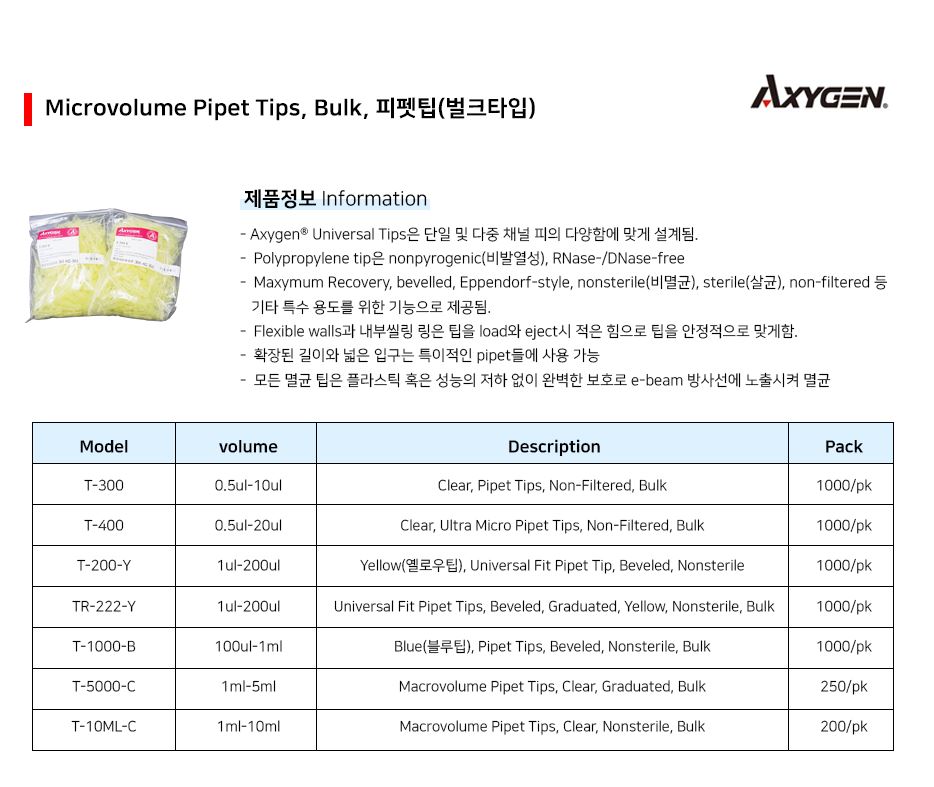악시젠 마이크로 볼륨 피펫팁(벌크) Microvolume Pipet Tips Mc00519