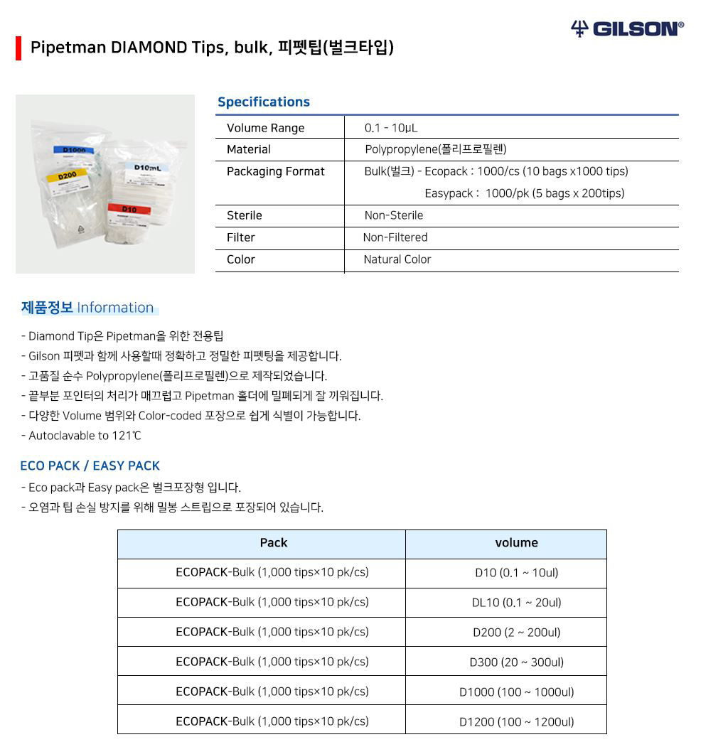길슨 피펫맨 다이아몬드 피펫팁 에코팩 벌크 Pipetman DIAMOND Tips Ecopack