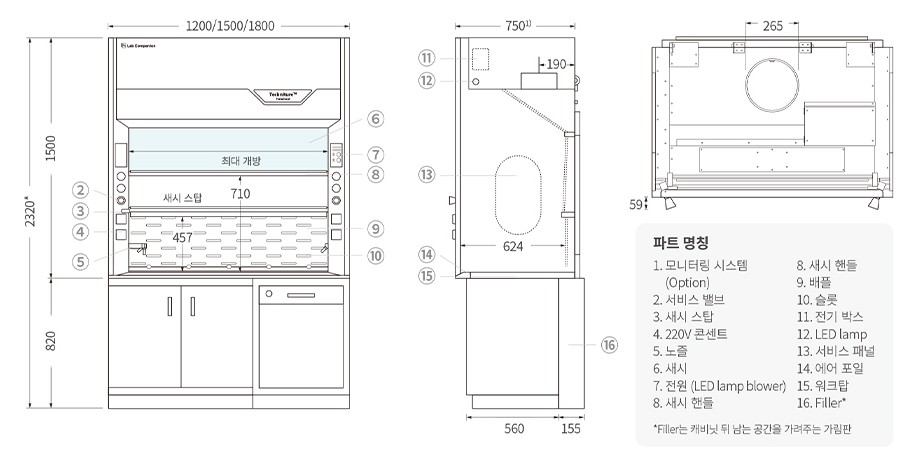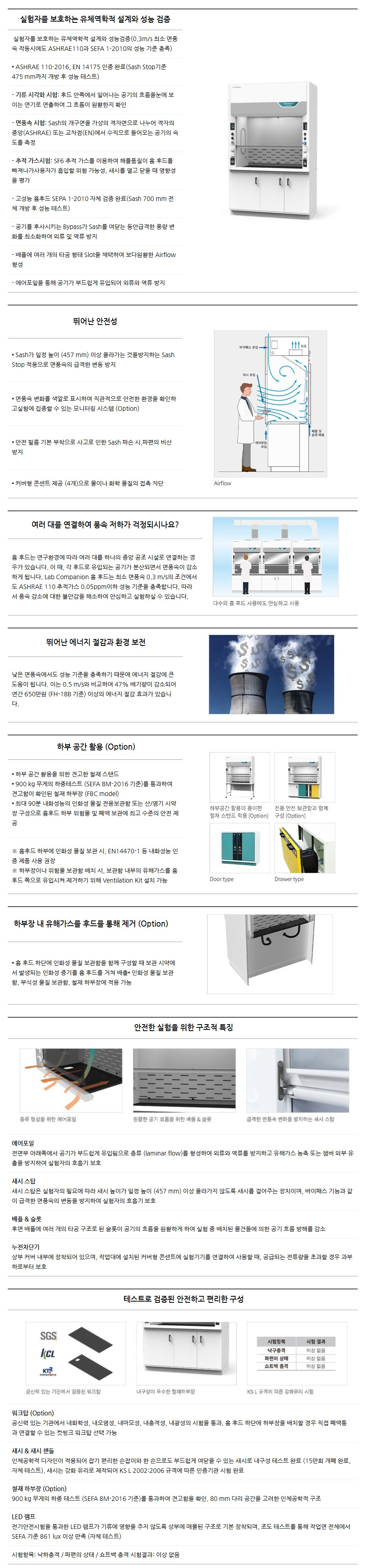 고성능 흄후드 유해가스 차단 안전장비 실험실 에너지 절감형 배기장치 FH-B 시리즈