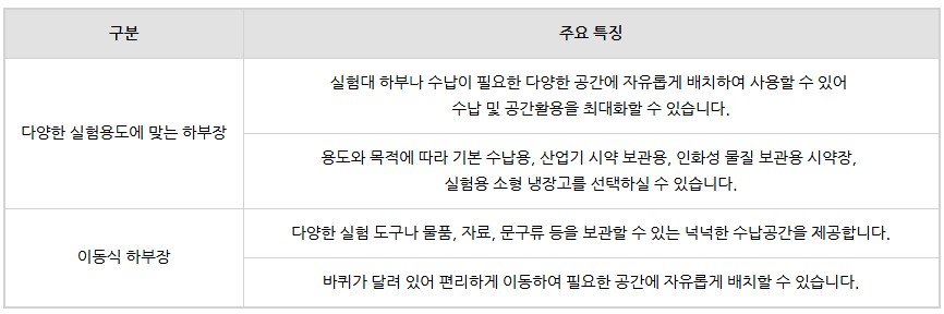 다양한 실험 환경에 맞춘 맞춤형 하부장 시스템!