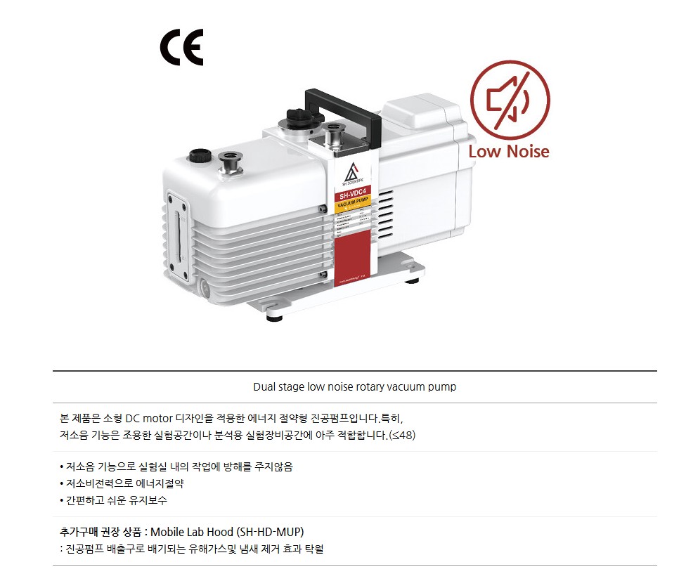 품명 저소음 듀얼 스테이지 오일 로터리 진공펌프 SH-VDC 시리즈. 낮은 소음, 에너지 절약, 안정적인 진공 성능으로 연구실·실험실에 최적의 진공 솔루션을 제공합니다.