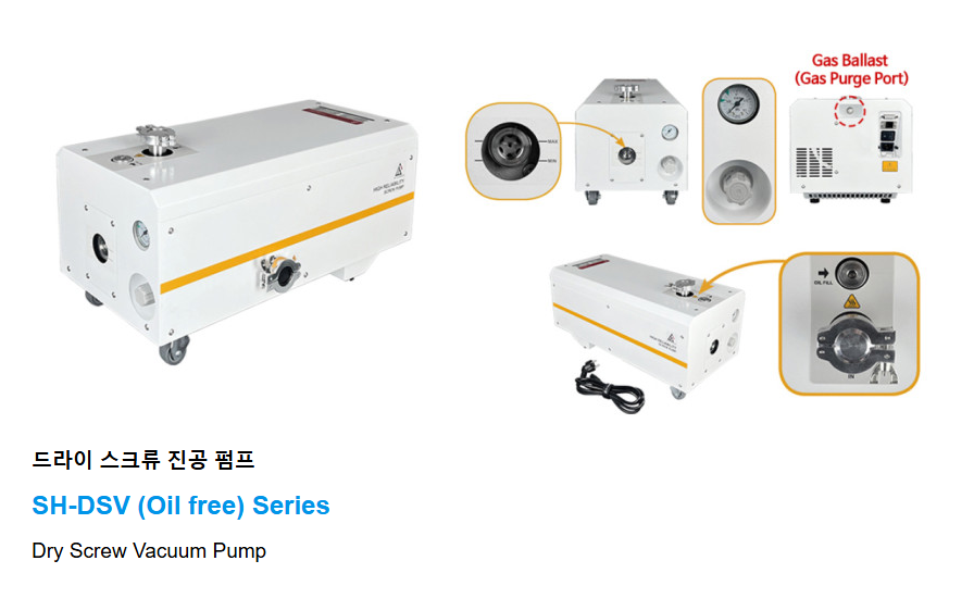 SH-DS 시리즈는 무오일 방식의 드라이 스크류 진공 펌프로 청정한 진공 환경을 제공합니다.