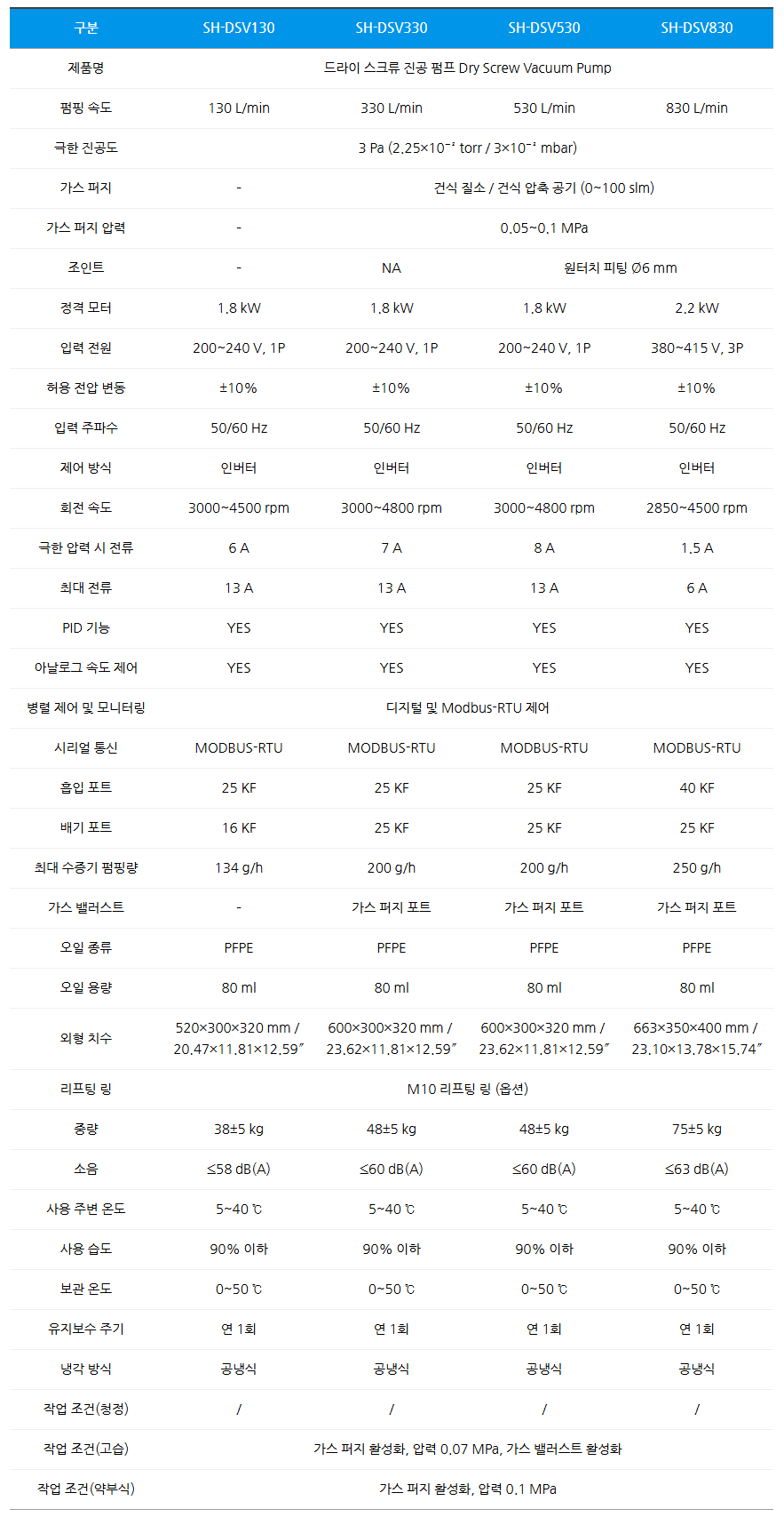 드라이 스크류 진공펌프 오일프리 인버터 제어 산업용 고진공 펌프 SH-DSV 시리즈