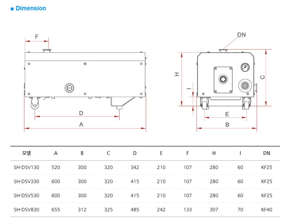 DS130부터 DSV830까지 용량별 모델로 선택이 가능합니다.