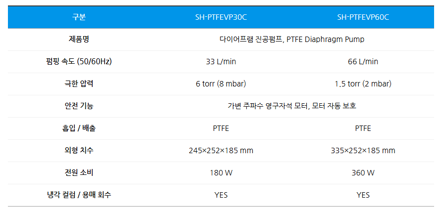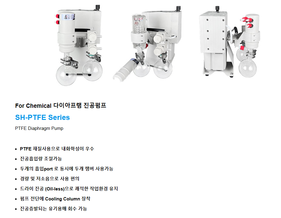 PTFE 다이어프램 진공펌프 오일프리 타입 용매 회수용 저소음 펌프 SH-PTFEVP 시리즈