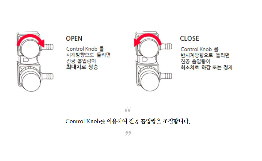 진공 흡입량 조절이 가능하며, 2개의 흡입 포트를 동시에 사용할 수 있습니다.