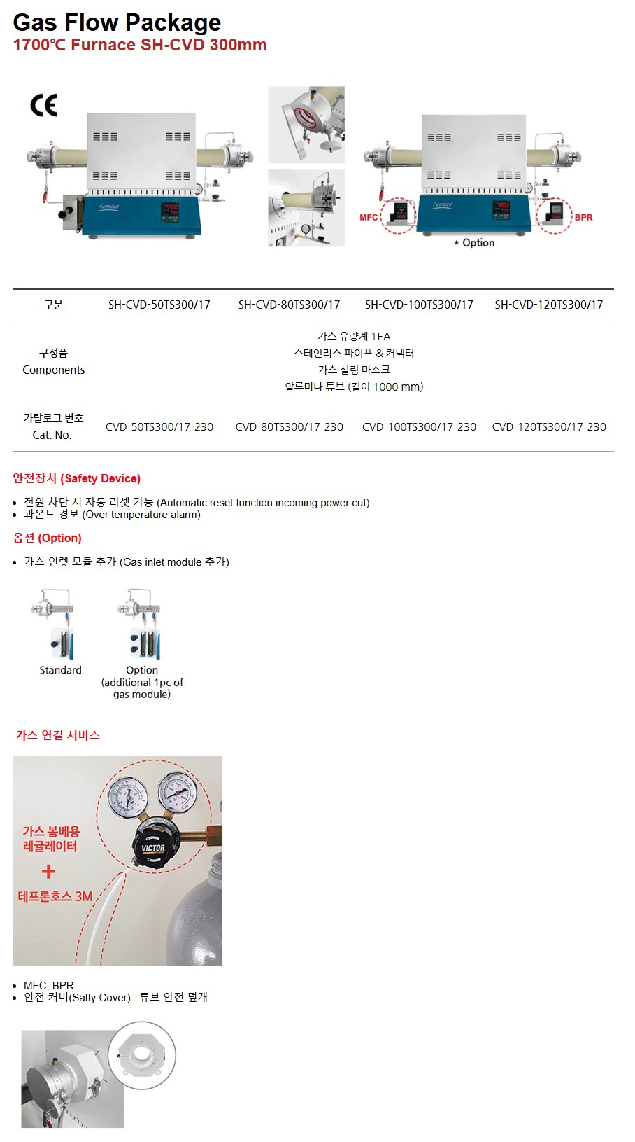 모든 모델은 가스 유량계, 스테인리스 커넥터, 가스 실링 마스크, 알루미나 튜브(길이 1000mm) 를 기본 포함하며,