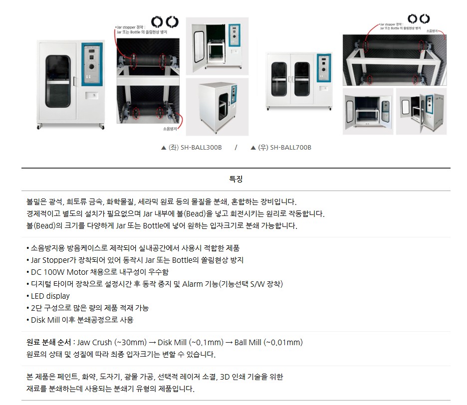 방음박스 볼밀 소음차단 박스형 저소음 분쇄기 밀링 장비 SH-BALL 시리즈