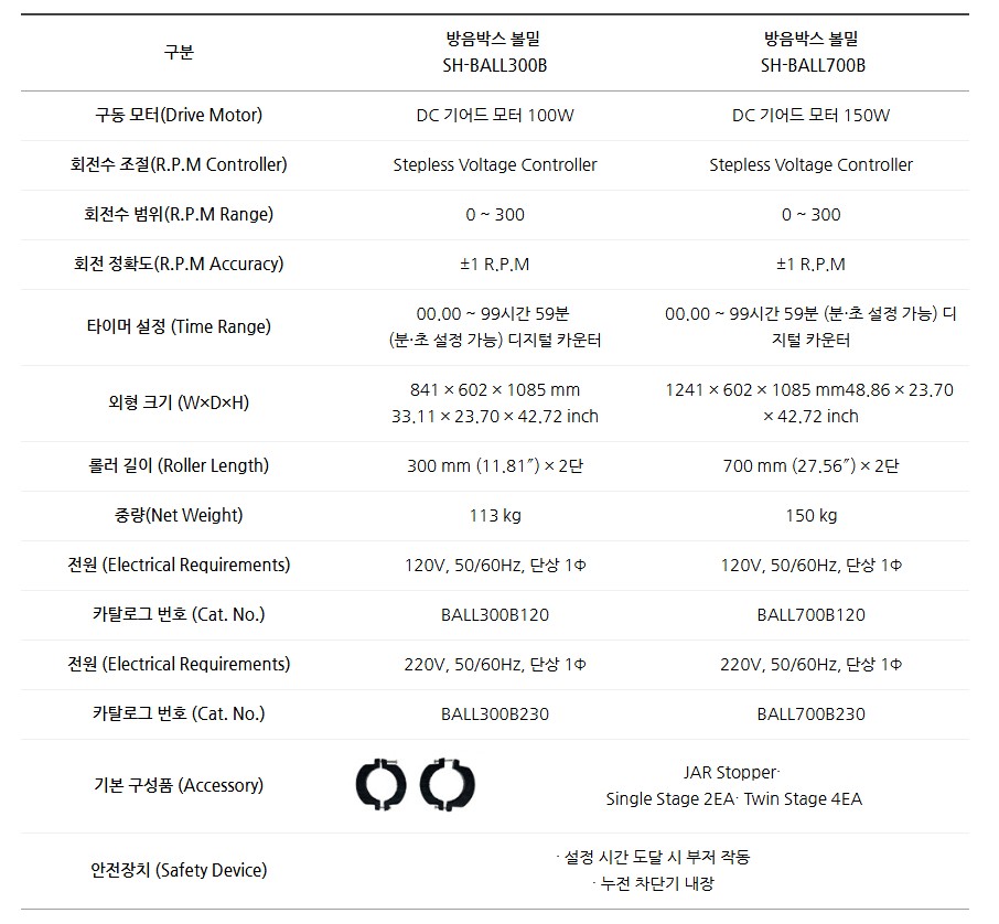 품명 방음형 Box Ball Mill, SH-BALL300B/700B 모델. 소음차단 구조, 디지털 타이머, RPM 정밀 제어로 실험실 및 분체 연구용 분쇄기에 적합한 장비입니다.