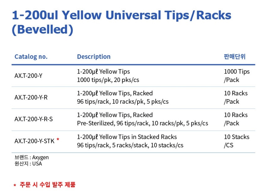 200ul 옐로우 팁/랙 AX.T-200-Y