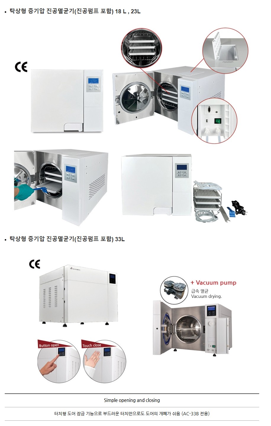 일부 모델은 진공펌프를 내장하여 고효율 멸균이 가능합니다.