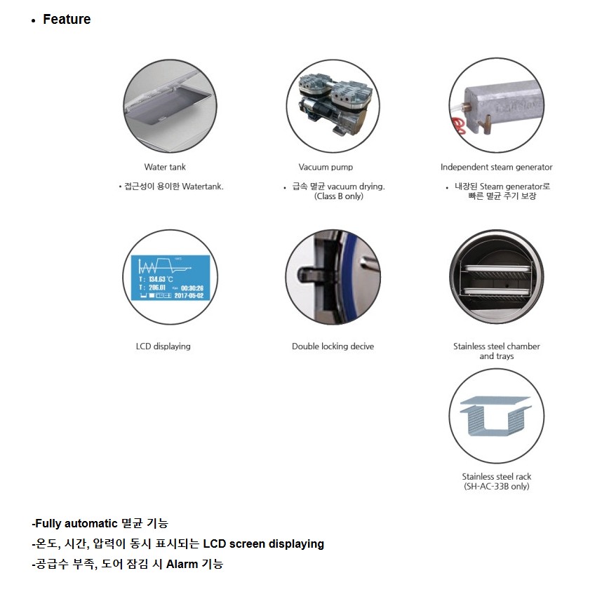 탁상형 증기압 진공 멸균기 진공 펌프 내장 스팀 오토클레이브 SH-AC-B 시리즈