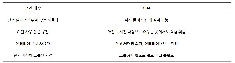 노출 사각 스위치 AC250V 6A 야광 표시 인테리어용 위너스 전기 스위치 / W3.P2401