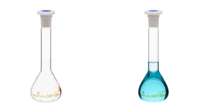 열충격에 강하고 내화학성이 우수한 정밀 부피 측정용 플라스크입니다.