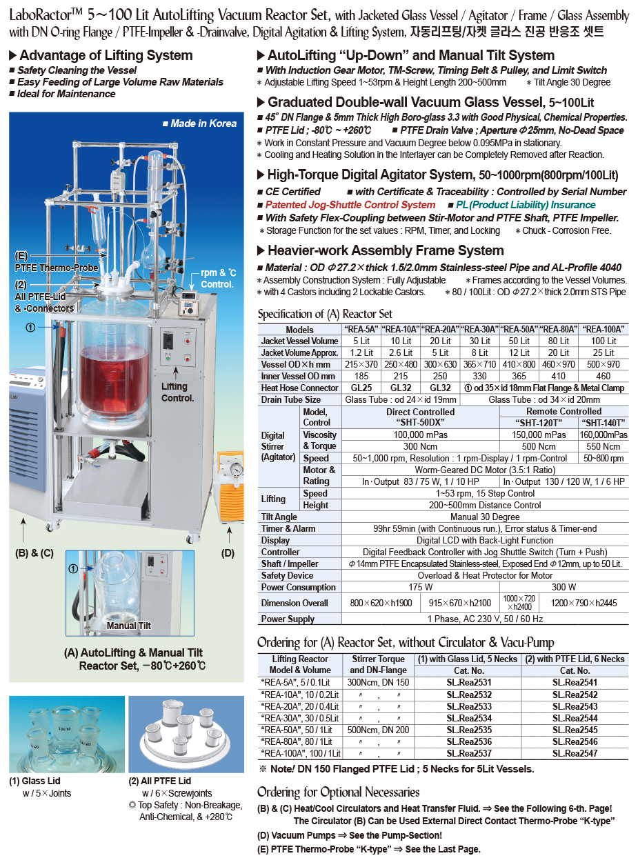 자동리프팅/자켓 글라스 진공 반응조 셋트