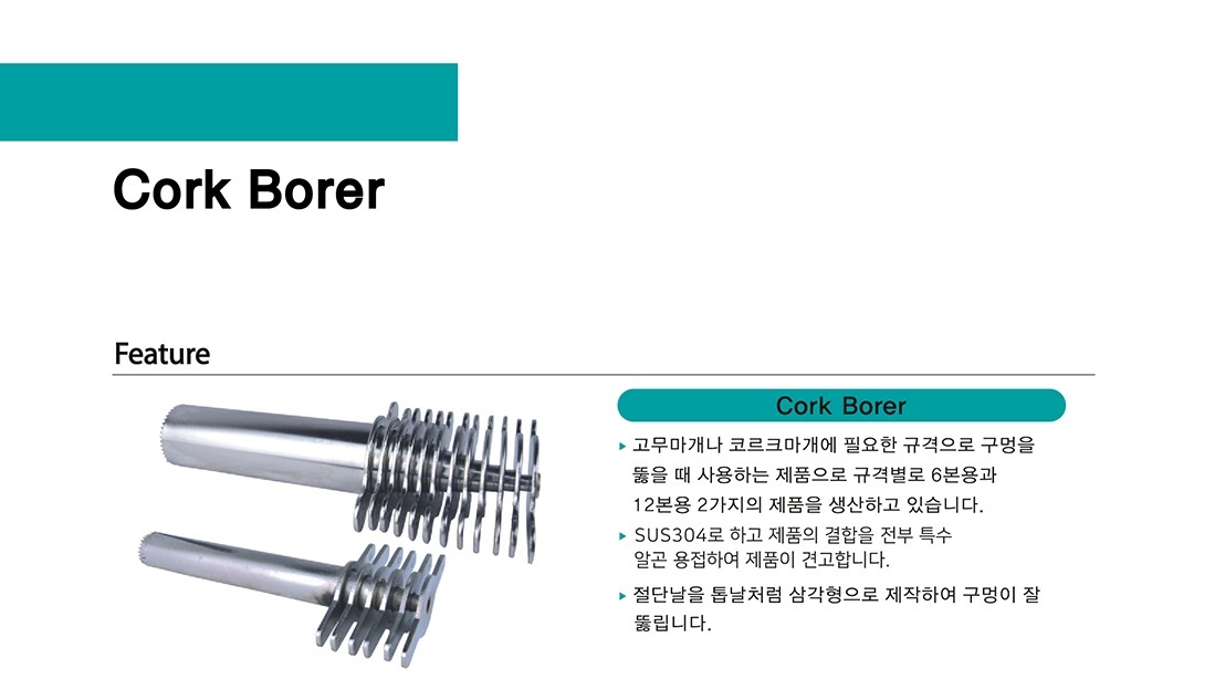 품명 고무마개나 콜크마개에 필요한 규격으로 천공을 내주기 위한 제품