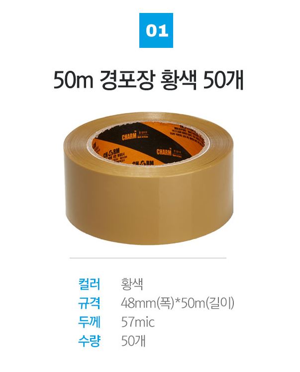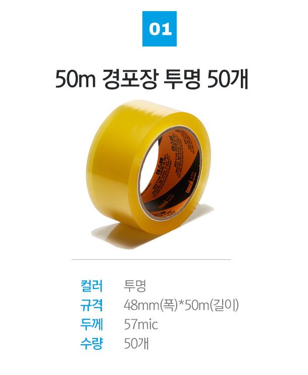 경포장 박스테이프 투명 황색 50M 50개 택배 가정용
