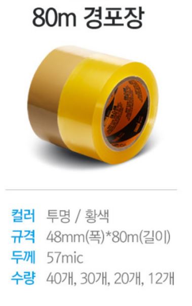 경포장 박스테이프 투명 황색 80M 택배 가정용
