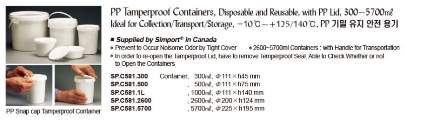 PP Tamperproof Containers, Disposable and Reusable, with PP Lid, 300~5700㎖ Ideal for Collection/Transport/Storage, -10℃~+125/140℃, PP 기밀 유지 안전 용기