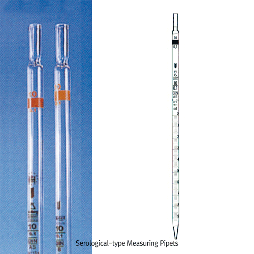 Witeg® Premium Certified AS-and B-class SEROLOGICAL Measuring Pipet, 0. 1 ~50㎖With Amber Stain Graduation & Color-code, DIN / ISO, [ Germany-made ]