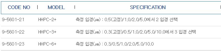 ● 개수 농도:HHPC-2+/70000개/ℓ (계수 손실 10%이하) HHPC-3+·HHPC-6+/140000개/ℓ (계수 손실 10%이하)