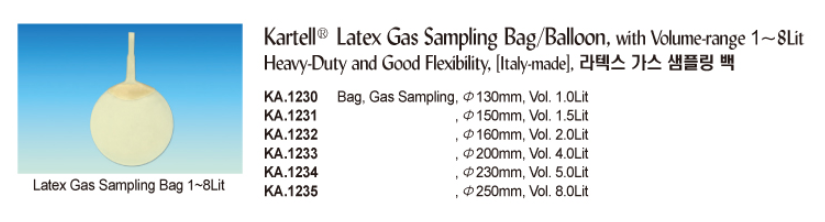 Kartell® Latex Gas Sampling Bag/Balloon, with Volume-range 1~8LitHeavy-Duty and Good Flexibility, [ Italy-made ] , 라텍스 가스 샘플링 백