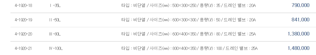 품명 스테인리스 수조 각형 (배수밸브 부속/비단열)