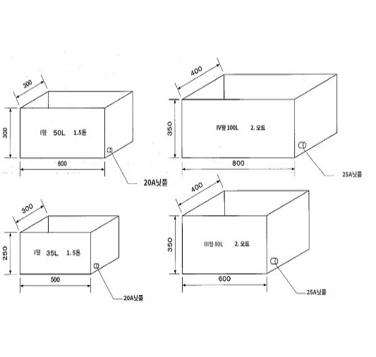 ● 드레인 밸브 사이즈 : S-1·S-2·S-3/15A (1/2인치), 그 외/20A (Ⅰ·Ⅱ형)·25A 용접 설치 (Ⅲ·Ⅳ형)