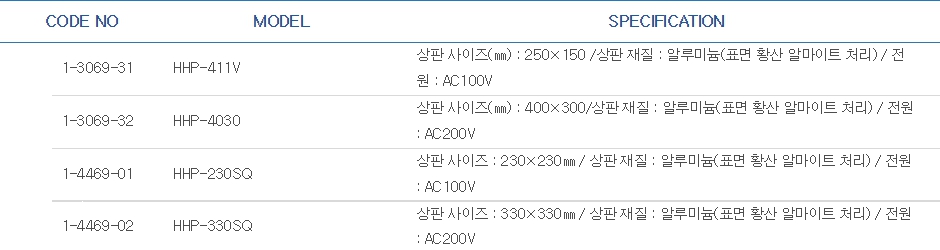 품명 샤말 핫 플레이트 HHP시리즈1 (최고 온도 400℃)