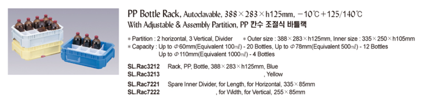 PP Bottle Rack, Autoclavable, 388×283×h125mm, -10℃+125/140℃With Adjustable & Assembly Partition, PP 칸수 조절식 바틀랙