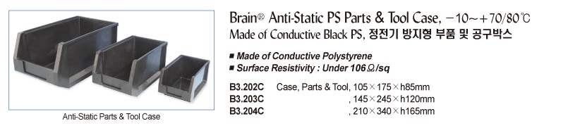 Brain® Anti-Static PS Parts & Tool Case, -10~+70/80℃Made of Conductive Black PS, 정전기 방지형 부품 및 공구박스