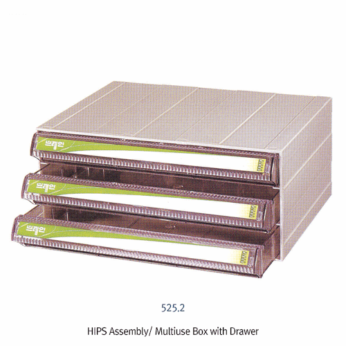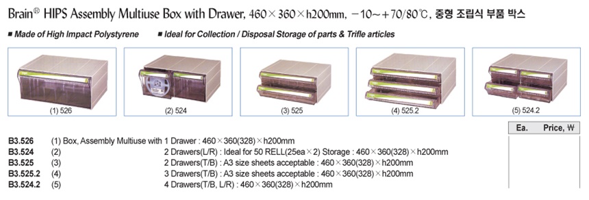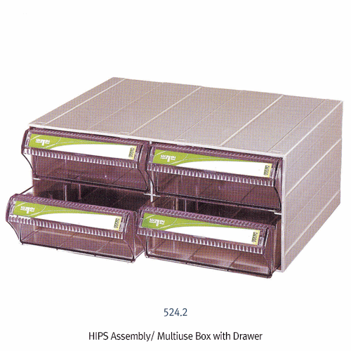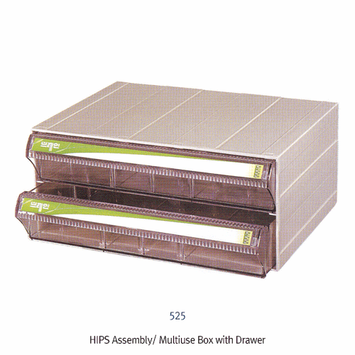 Brain® HIPS Assembly Multiuse Box with Drawer, 460×360×h200mm, -10~+70/80℃, 중형 조립식 부품 박스