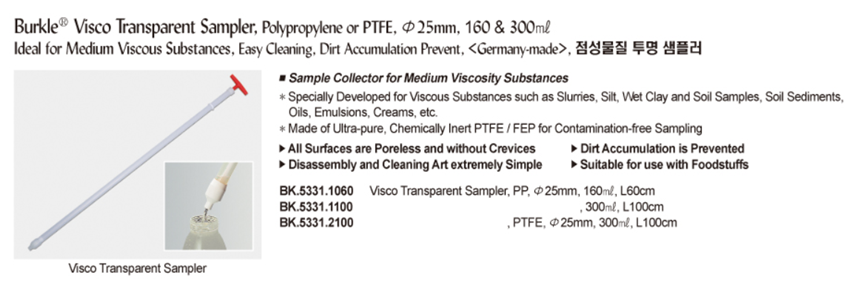 Burkle® Visco Transparent Sampler, Polypropylene or PTFE, Φ25mm, 160 & 300㎖Ideal for Medium Viscous Substances, Easy Cleaning, Dirt Accumulation Prevent, , 점성물질 투명 샘플러