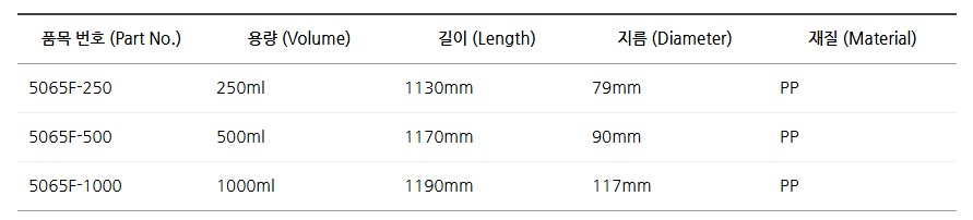 250ml부터 1000ml까지 다양한 용량으로 제공되어 실험실, 생산라인 등에서 폭넓게 활용됩니다.