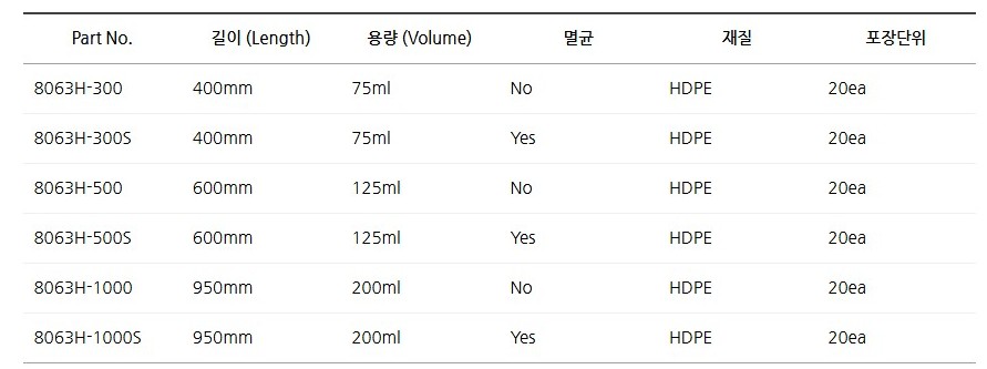 멸균(SAL10??)과 비멸균 제품으로 구분되며, 식품·화학·제약 분야에서 안전하게 사용할 수 있습니다.