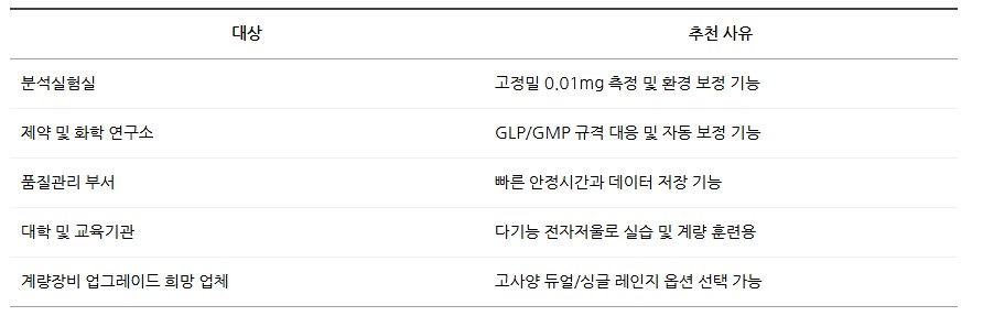 고정밀 측정이 필요한 실험, 분석, 품질관리 현장에 적합한 제품입니다.