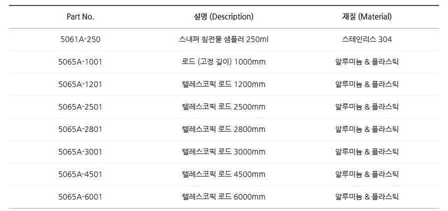 304 스테인리스 본체와 알루미늄 로드를 사용하여 최대 6m 깊이까지 안정적으로 시료를 수집할 수 있습니다.