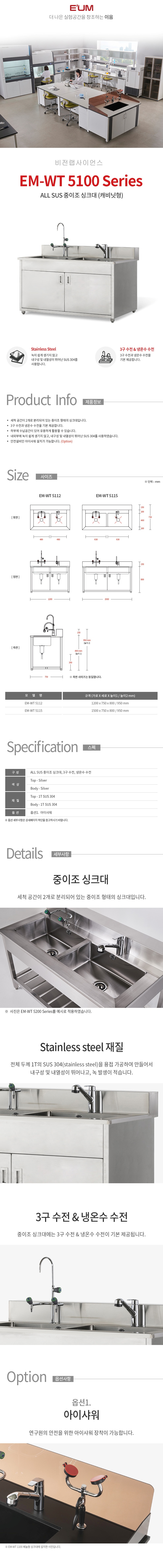 ALL 스테인리스 스틸 재질 중이조 싱크대 (캐비닛형) EM-WT 5112