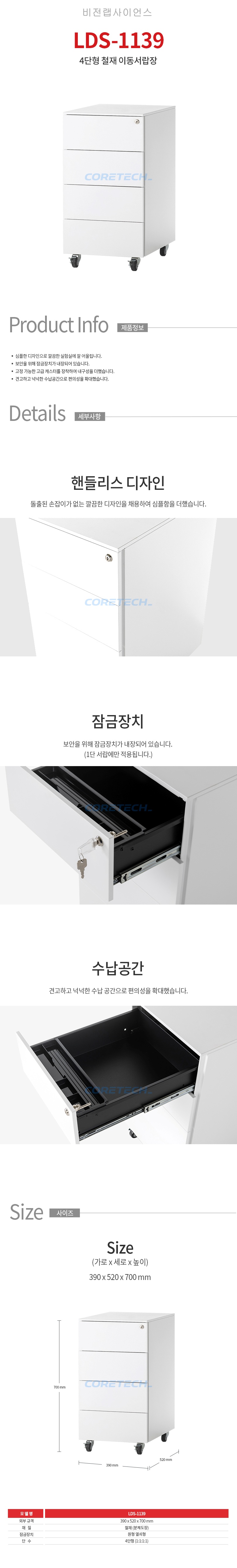 철재 4단 서랍 타입 이동서랍장 LDS-1139
